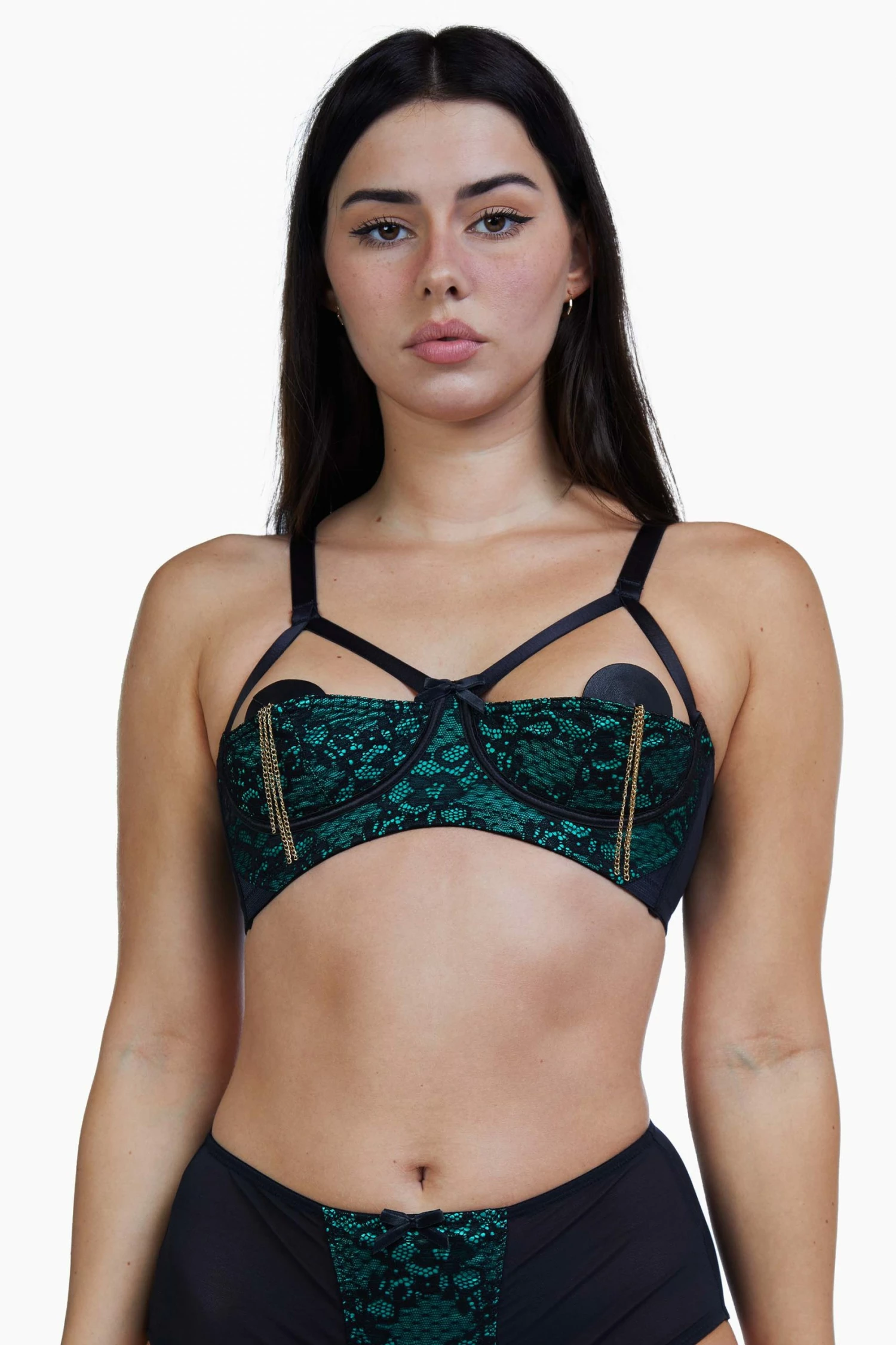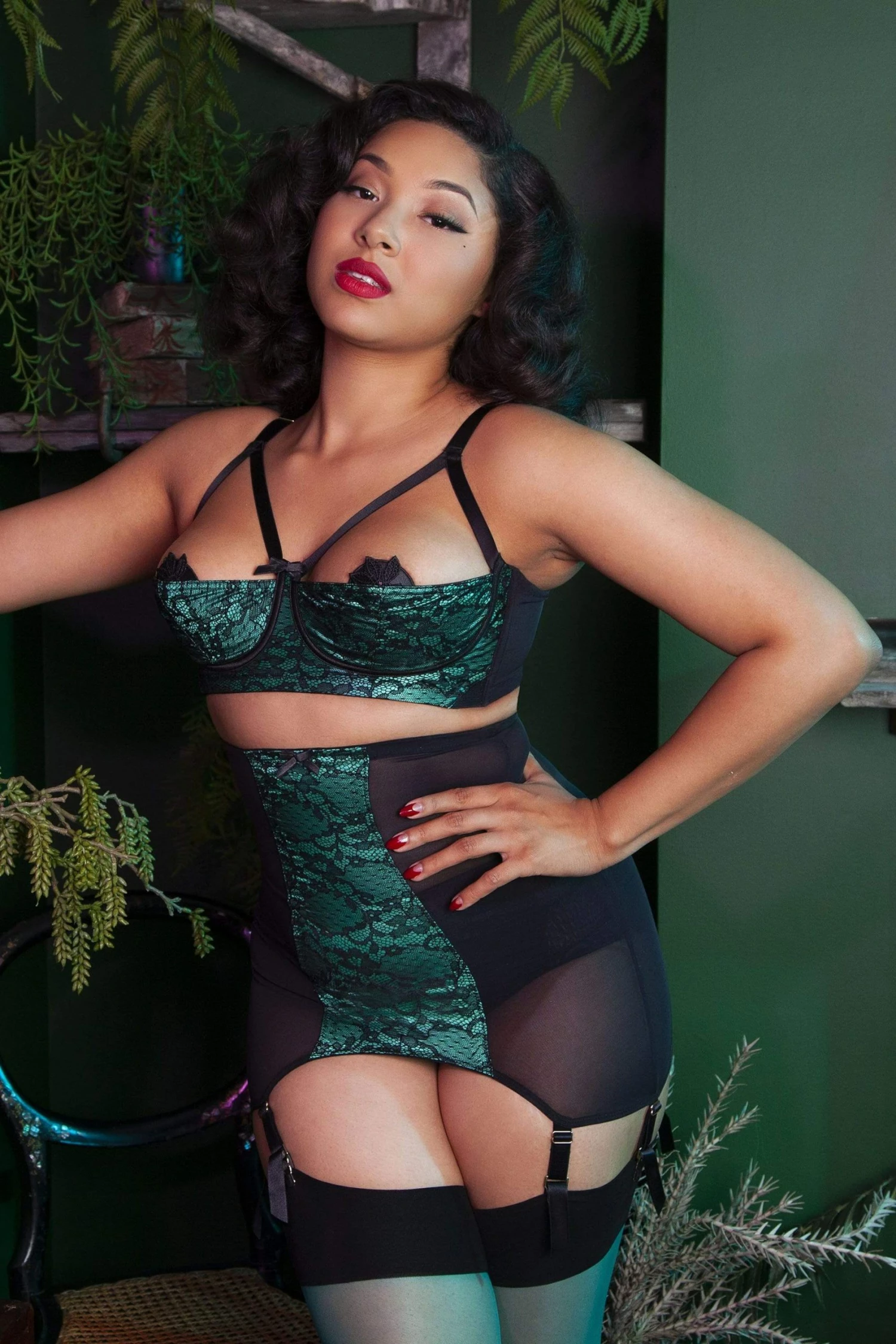 Buy โจ Bettie Page Lingerie Emerald Green Spiral Stitch Overwire Bra A – G Bras ๐งจ
