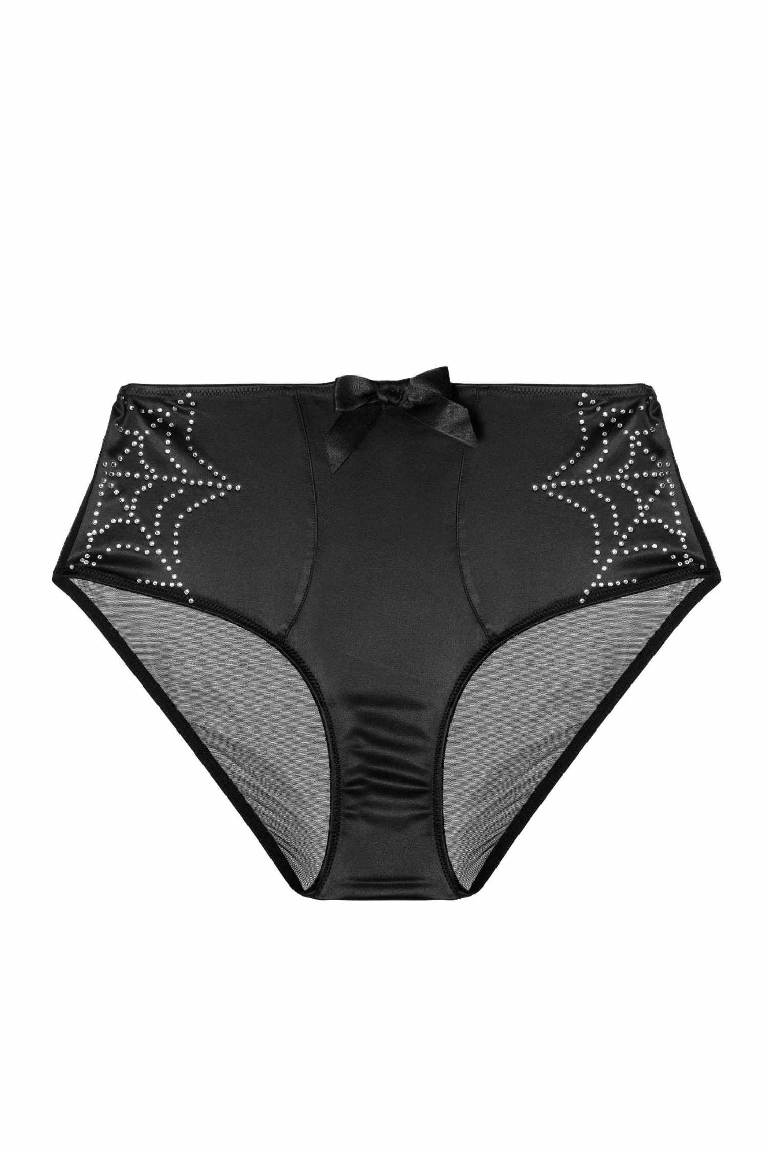 Take a trip back to the 50’s in our Bettie Page Annabelle Diamante Spiderweb High Waist Brief. These jet black briefs are embellished with dazzling diamantes to help you shine in the dark… Complete the set with our matching Girdle and Bra to bring out your inner temptress.