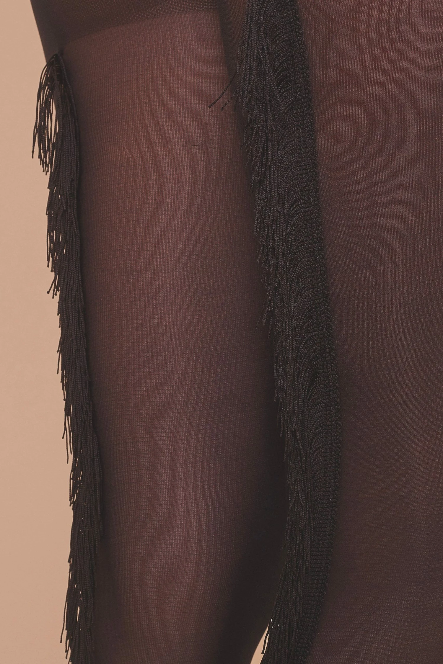Unique, Glam and fun, our fringed tights are fabulous. All the fun is around the back, with a fringed seam detail that will sway as you strut.