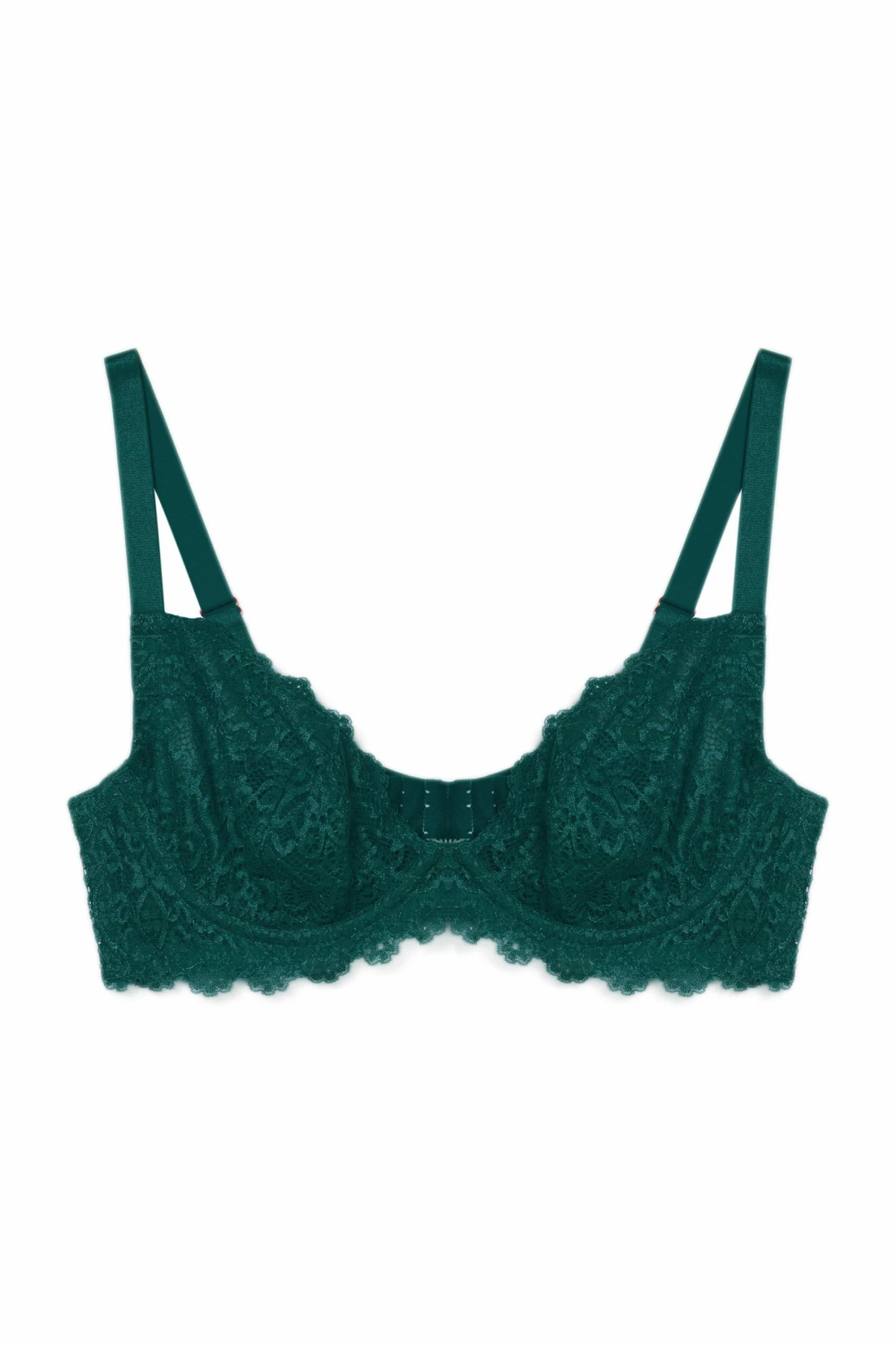 The Ariana is back in a new fit for more support. Here in our teasing Teal colourway, this is the everyday lace bra you have been waiting for. A classic bra with a modern and considered shape to flatter your figure. Leaving you comfortable and empowered.