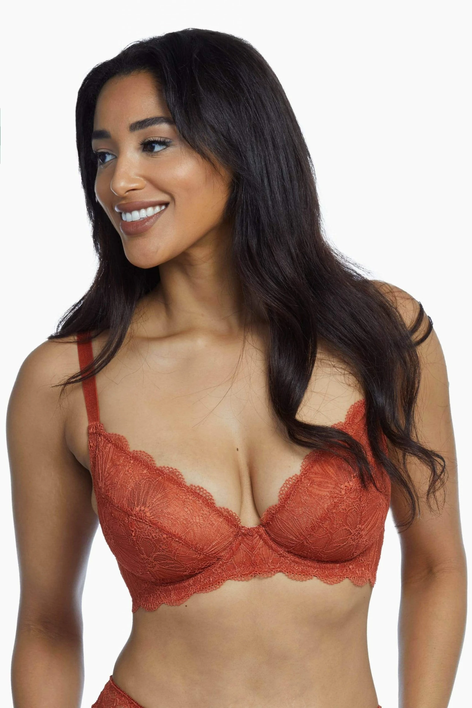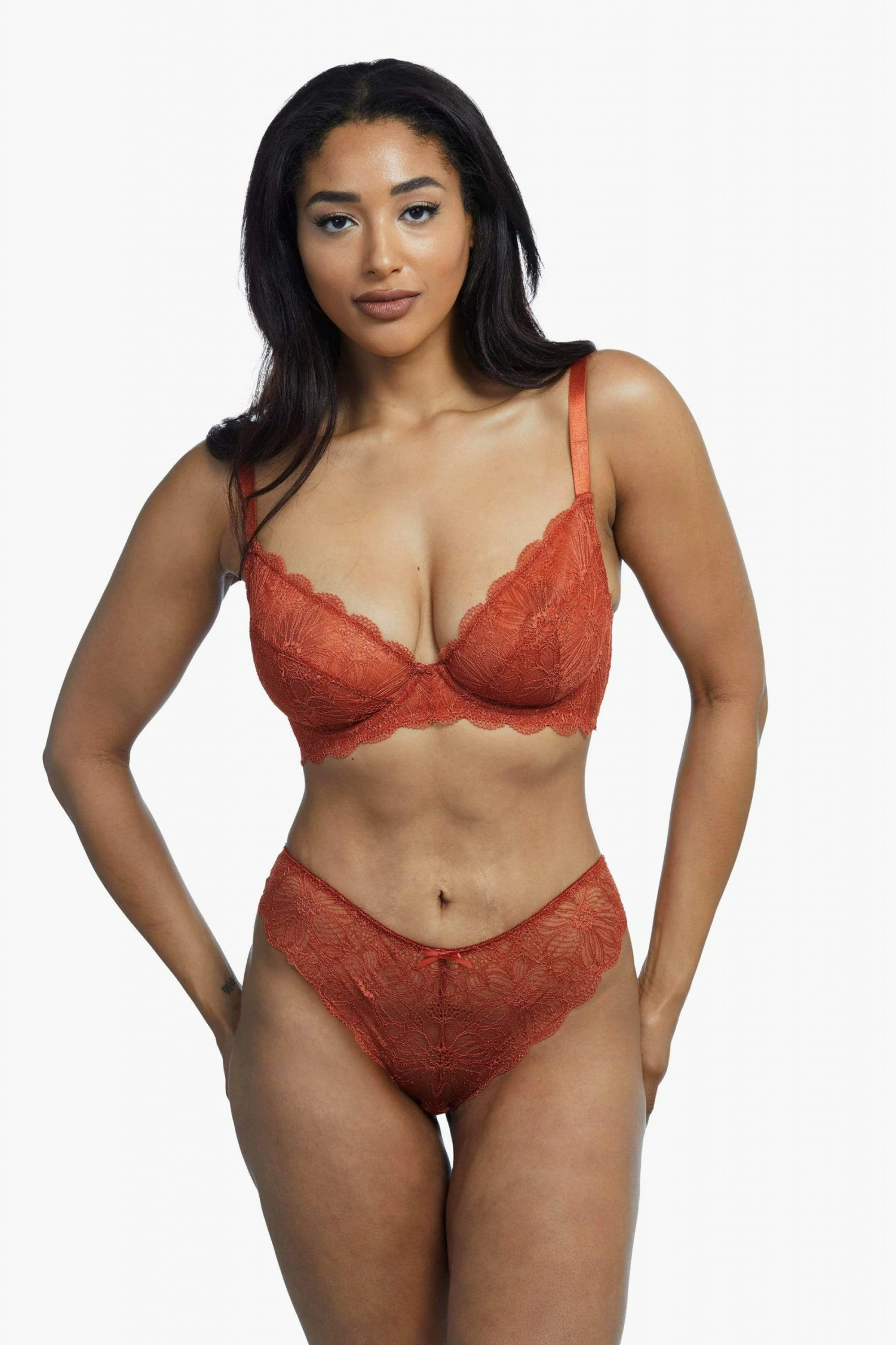 The Ariana is back in a new fit for more support. Here in a Rust colour way, this is the everyday lace bra you have been waiting for. A classic bra with a modern and considered shape to flatter your figure. Leaving you comfortable and empowered.