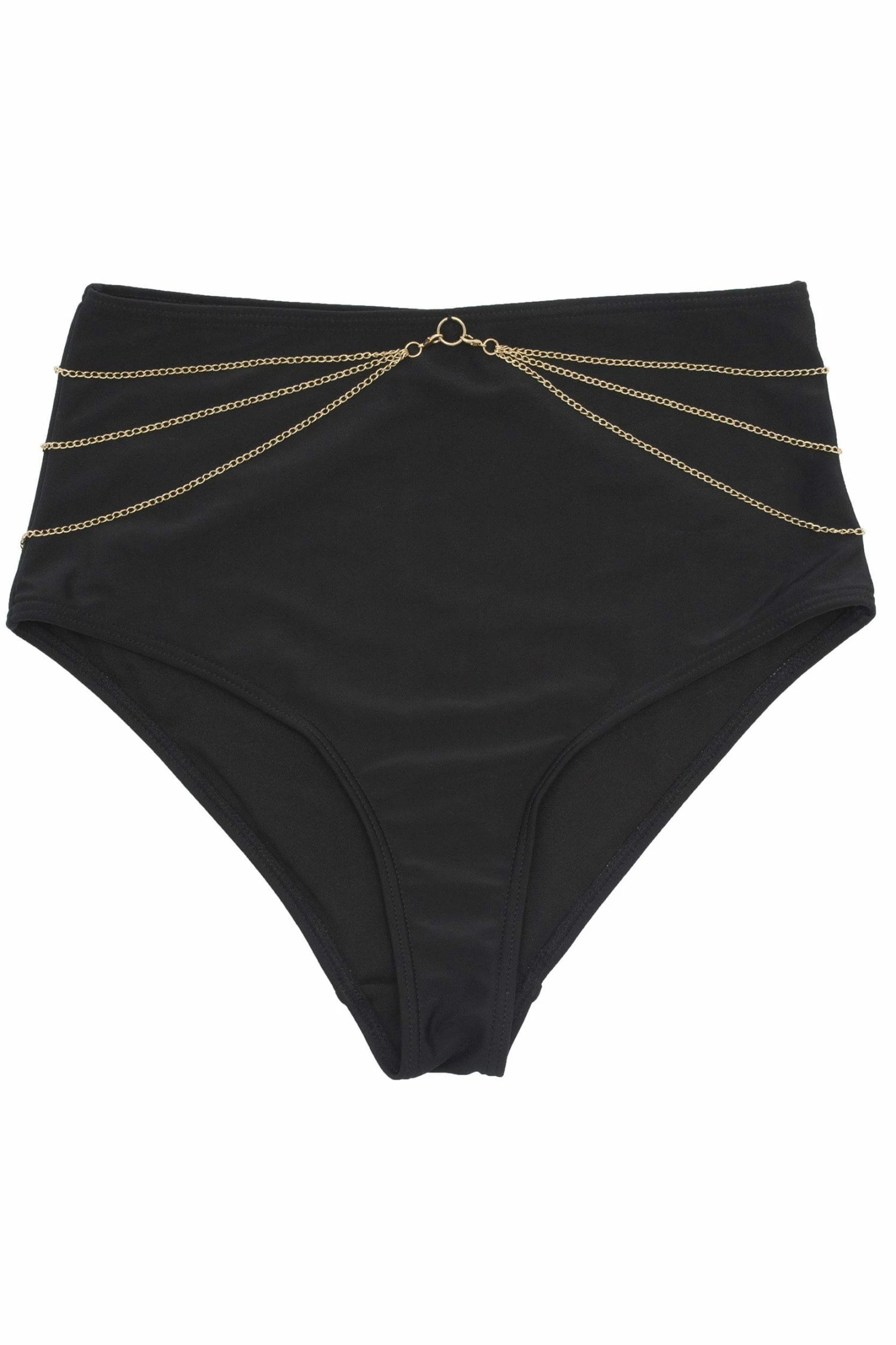 Get beach party ready in the Goldie High waist bikini brief. High waist with detachable chains for that extra bit of sparkle!