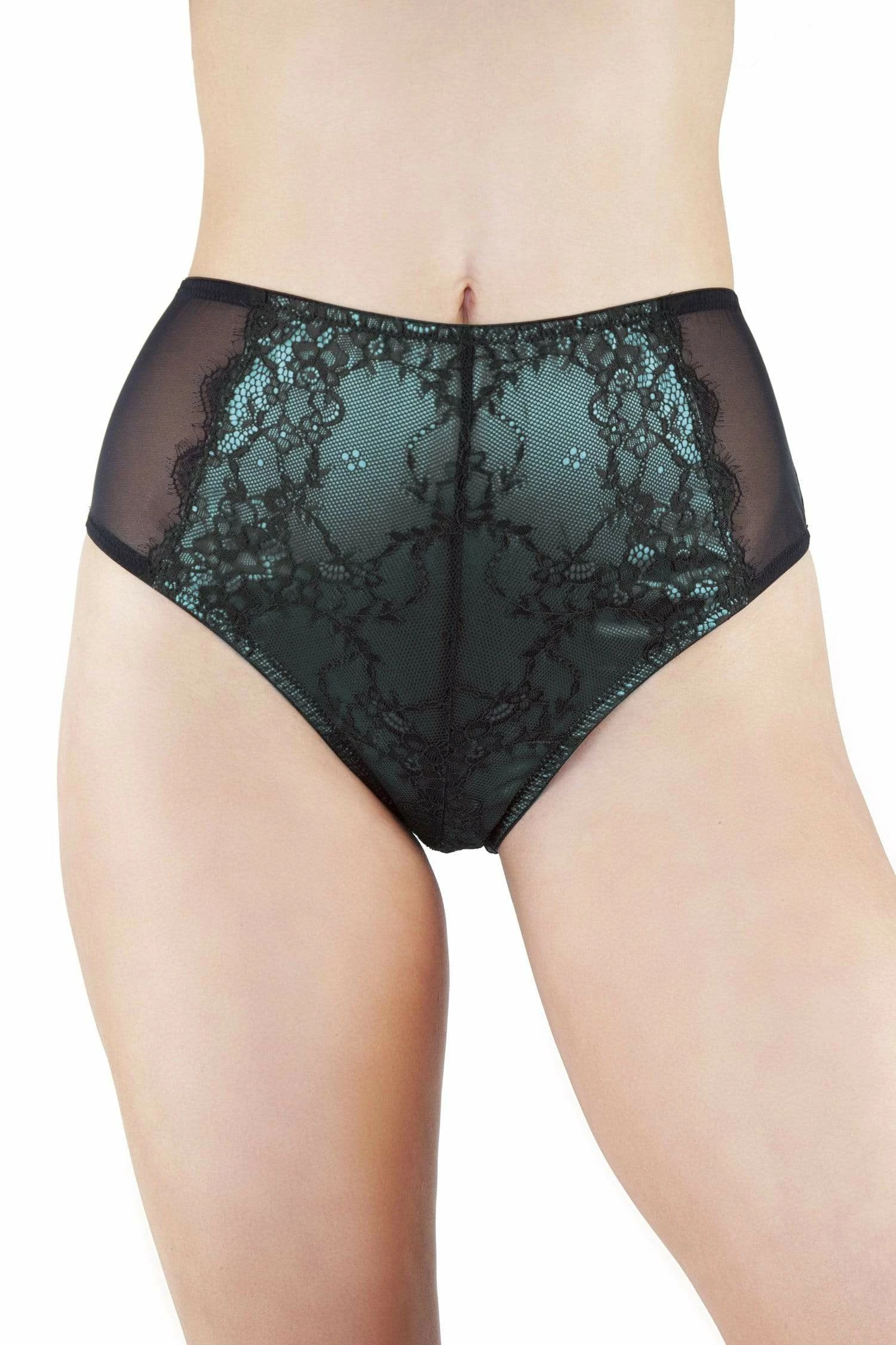 Turn heads in our glamorous and seductive Irena! The brief features a glamorous high waist, lavish teal satin front and lashings of floral lace overlay. It has a sexy mesh back.