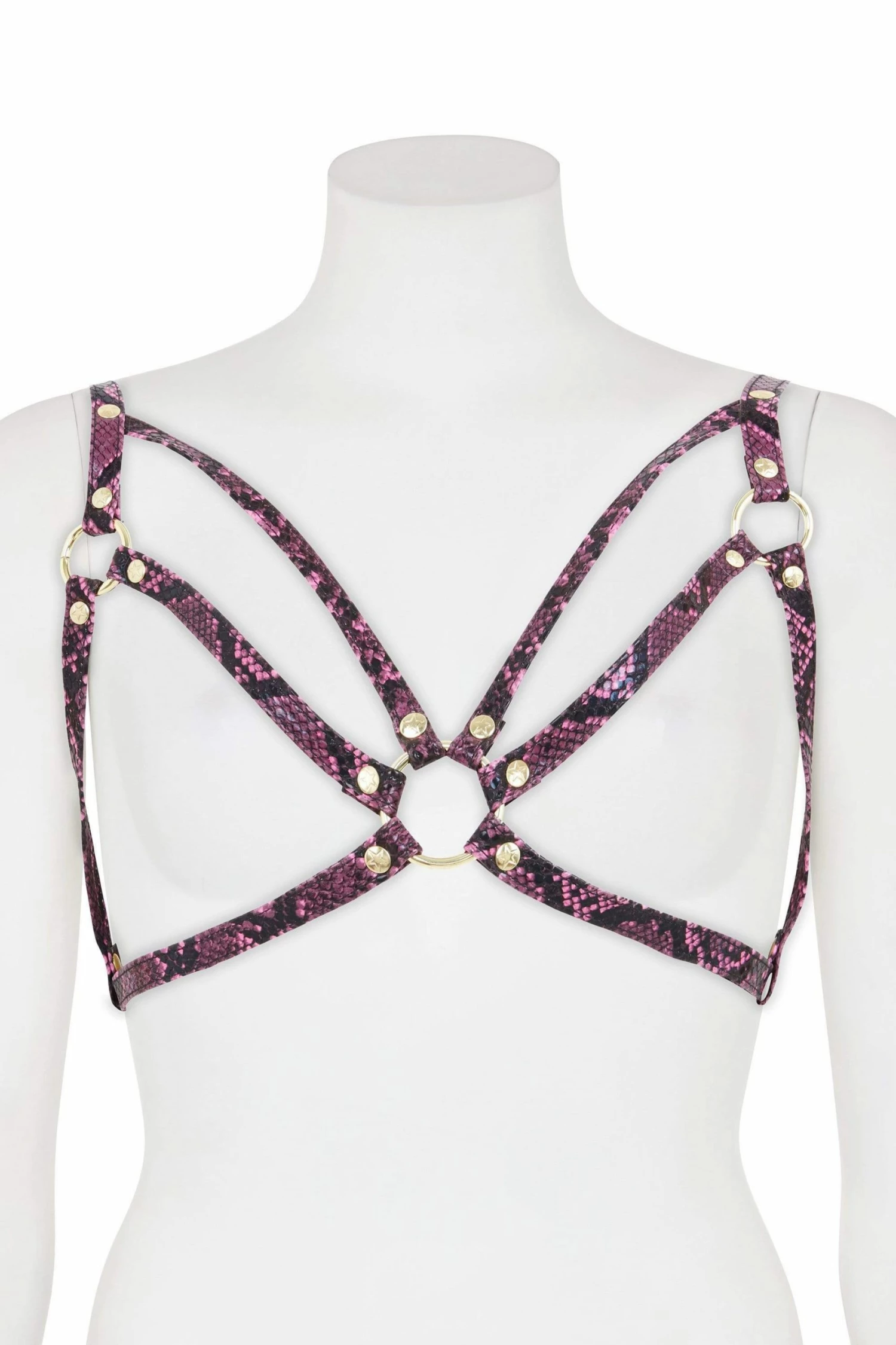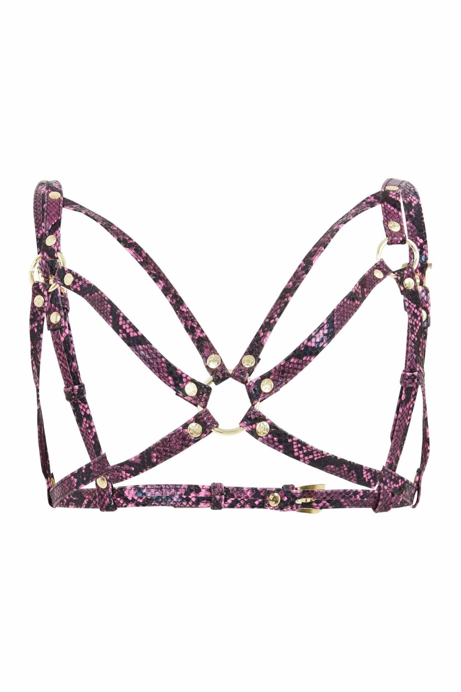 Add a touch of ssssexy sophistication with this faux snakeskin harness bra.