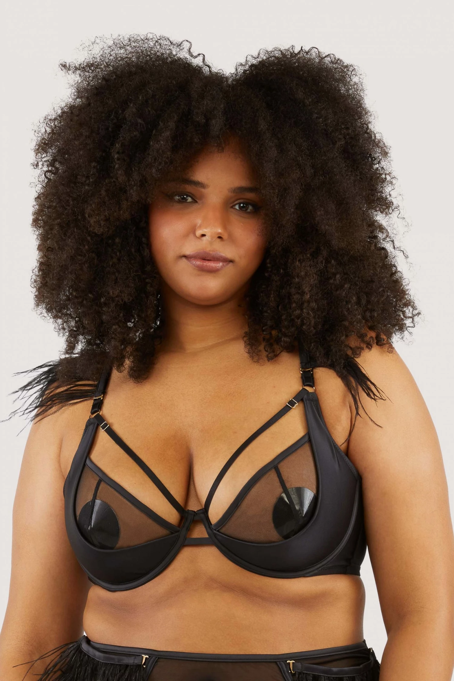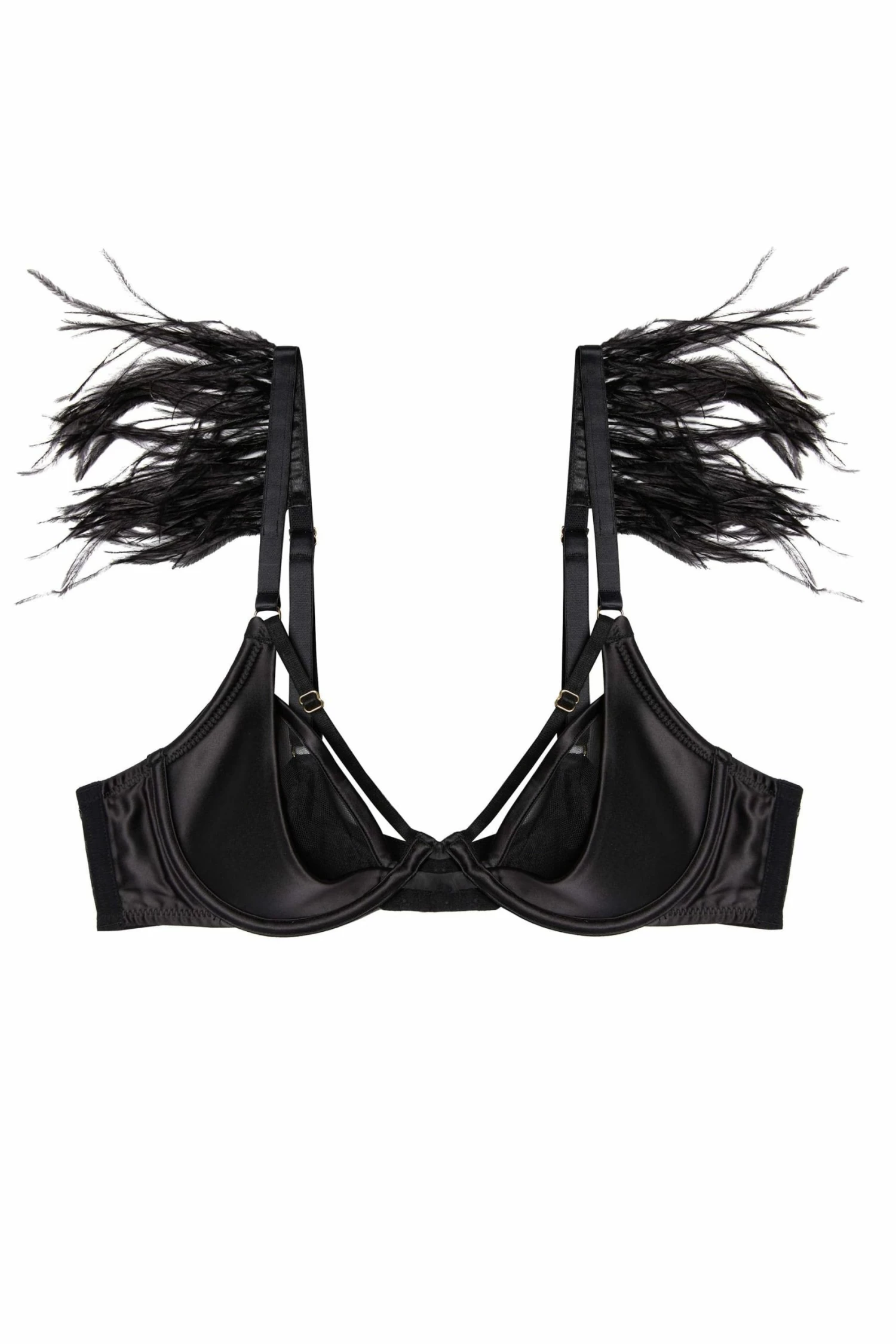 Feel lavish in our Electra Black Bra, which is constructed from silky black satin and features a detachable fluffy feather accent on the straps for added wow factor.