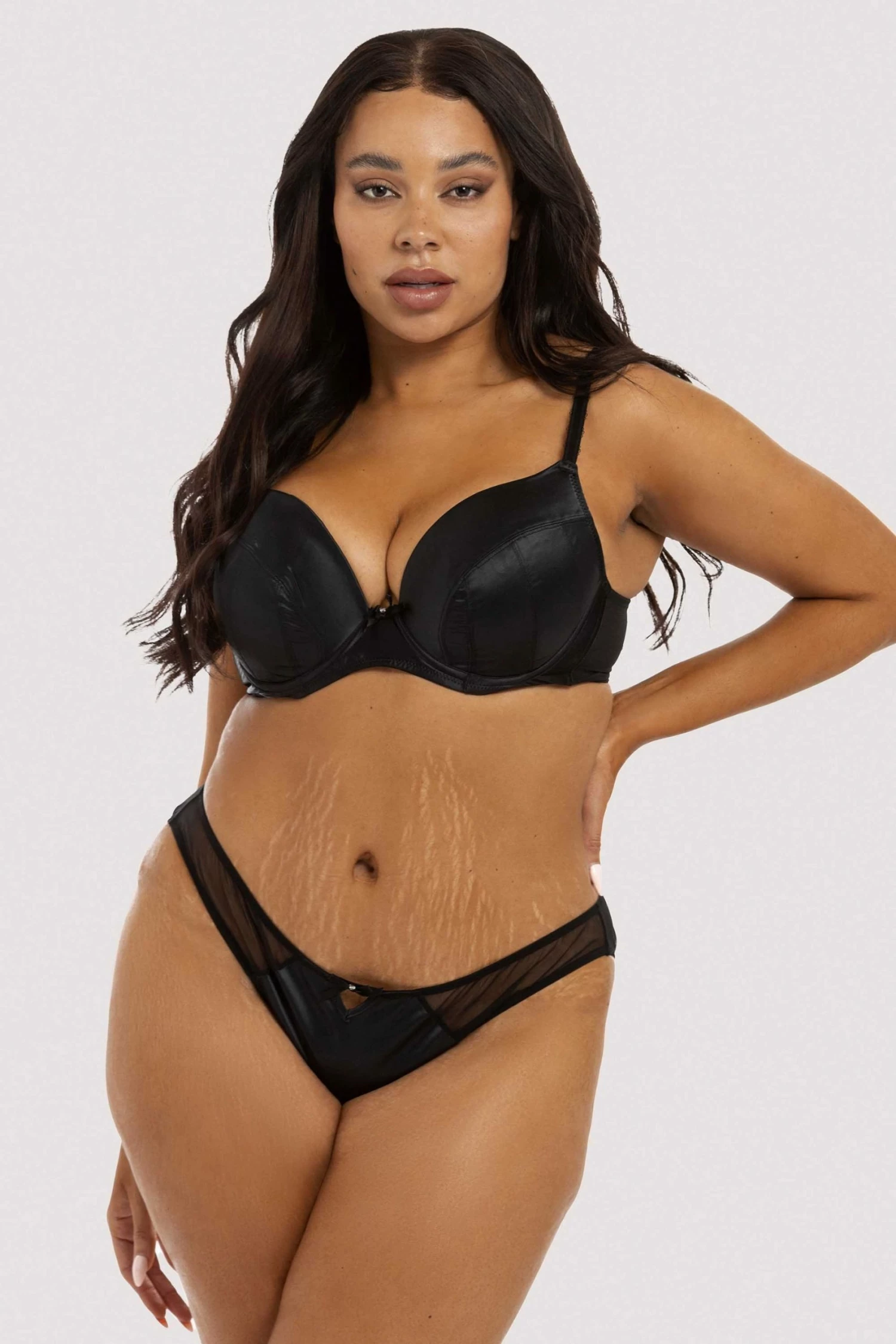 Feel sensational in our Sophia Black Plunge Push up Bra. This push up bra features padded cups which are underwired for ultimate support, and covered in pretty satin with a bow at the centre. Match with our Sophia Brief or Thong for the complete classy co-ord.