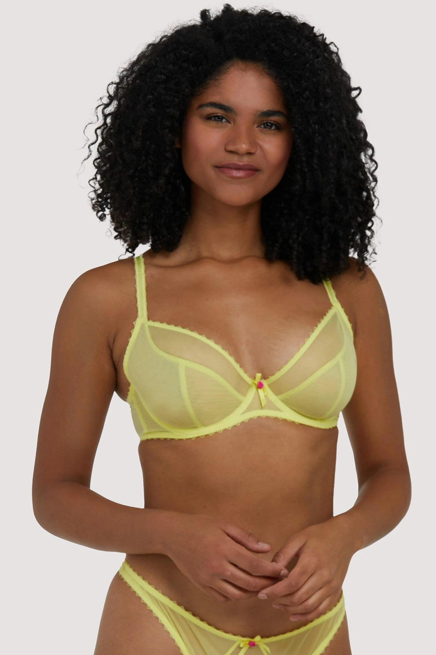 The Grace bra is an everyday mesh panel bra with pretty details. This plunge mesh bra is comfortable and supportive with its underwire, and low cut it’s the perfect balance between practical and sexy without trying too hard.
