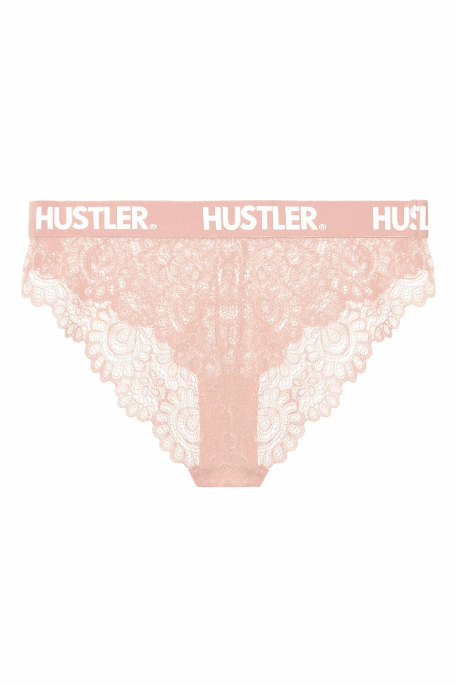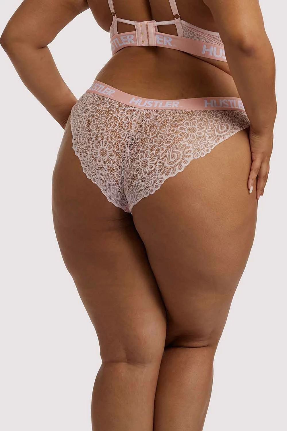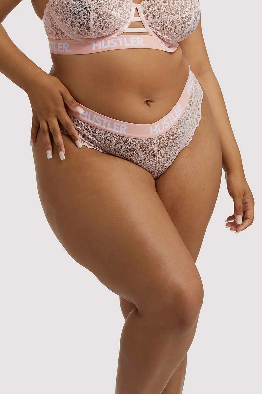 Stay pretty in pink with our Baby Pink Hustler branded Lace Brief. Made of flirty floral lace and finished with an elasticated banded waist with Hustler branding to give it a preppy look! Pair it with the matching Lace Bra for the full finish.