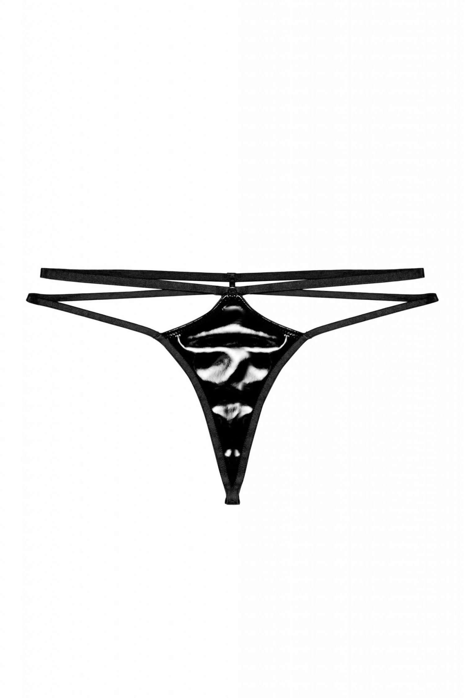 Maxine is fulfilling your S&M fantasy! This PVC set is molded to show off your body. The thong is strappy and features strappy sides and G-string back.