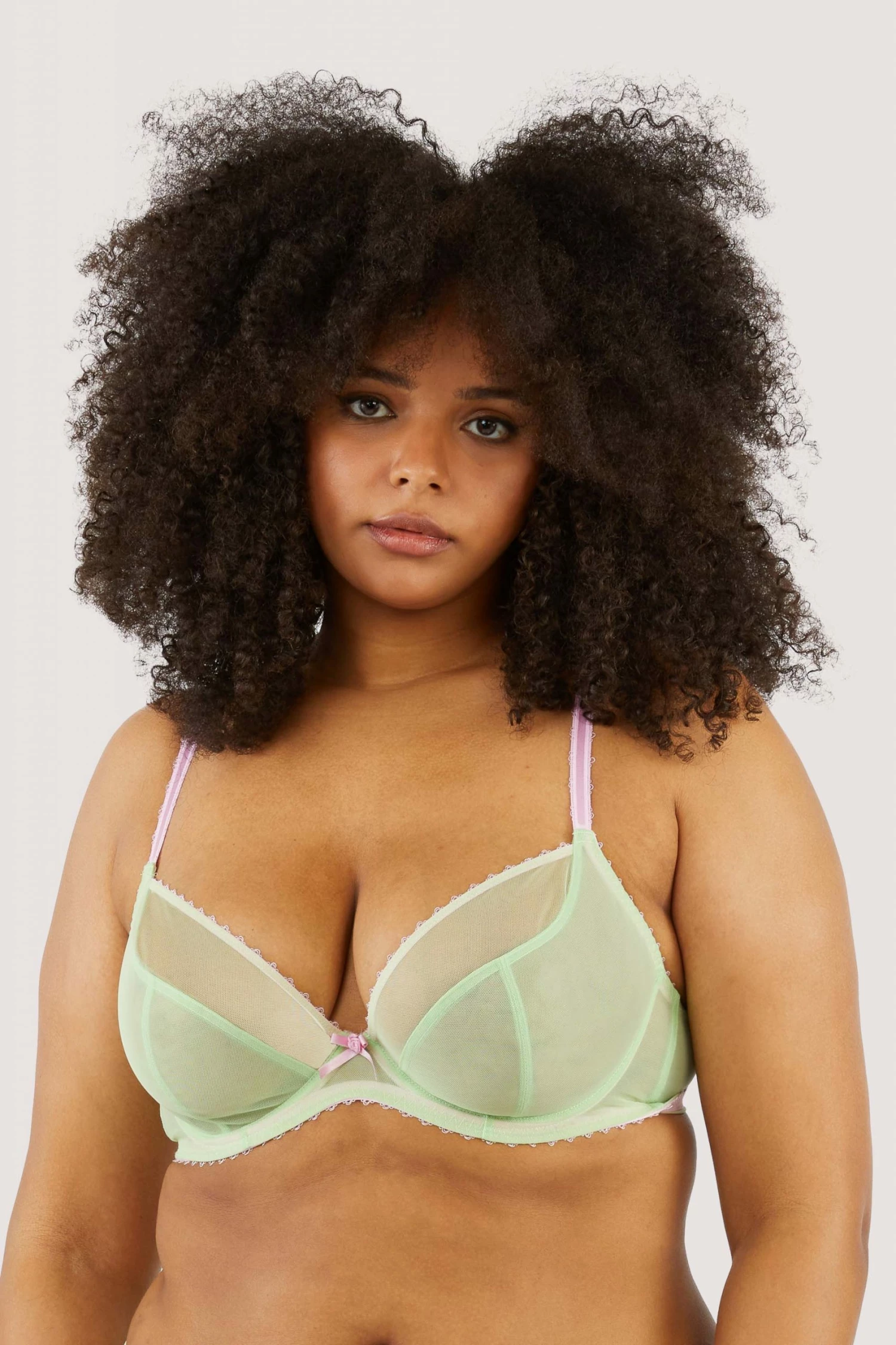Our Grace Green Mesh Bra is the perfect everyday bra with pretty details. This plunge mesh bra is comfortable and supportive with its underwire, and low cut it’s the perfect balance between practical and sexy without trying too hard. Match with our Grace Brief or Thong for the full finished look.