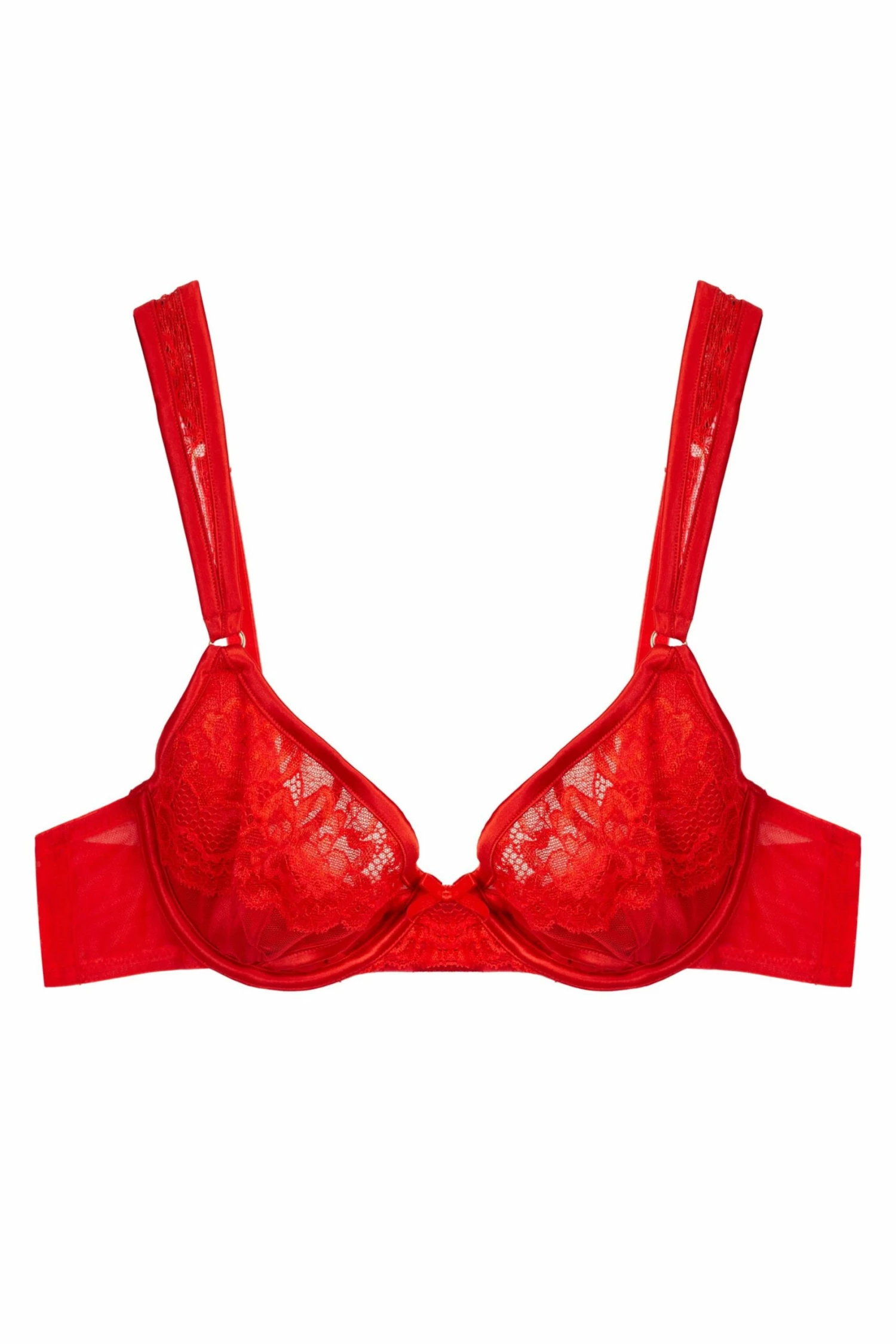 Inject some colour into your life with the Leona. Featuring stunning red lace, adding a bit of spice to those special nights out. Pair with the matching brief to complete the look.