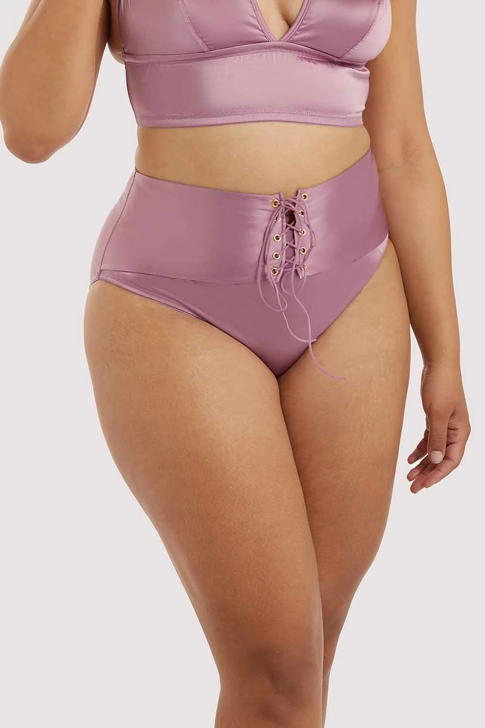 This is not your typical satin high waist knicker. With an extra lace up panel for an extra bit of fun, its pure luxury.