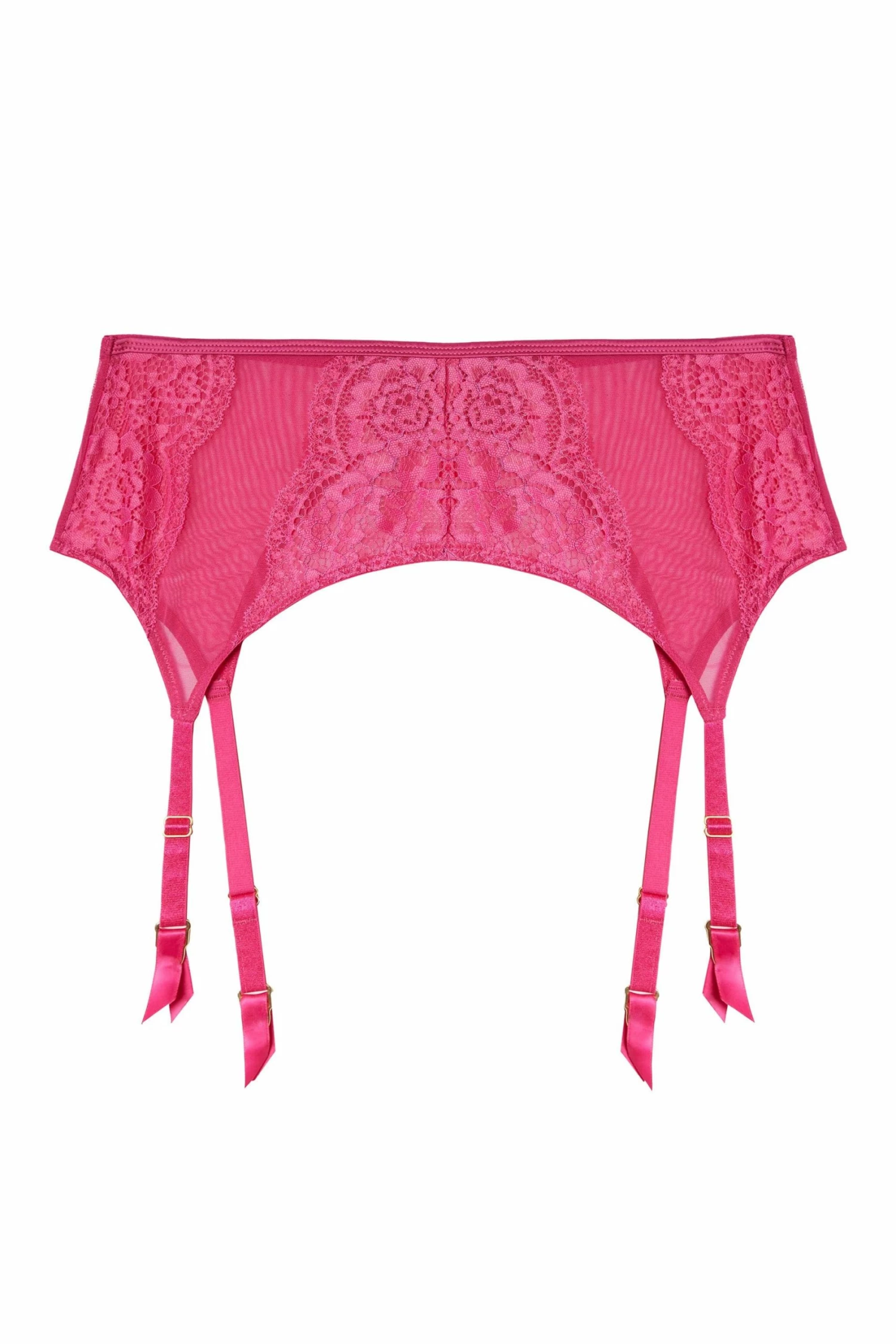 The bold, bright, and sexy Ophelia.. this lacy pink set is a must-have addition to your lingerie-drawer! The set features lace and mesh in a hot pink, with sultry satin lining. Match with the high waist brief and bra for a pink perfect set.