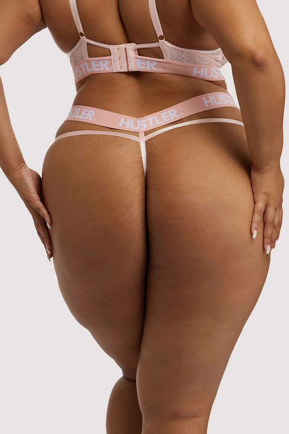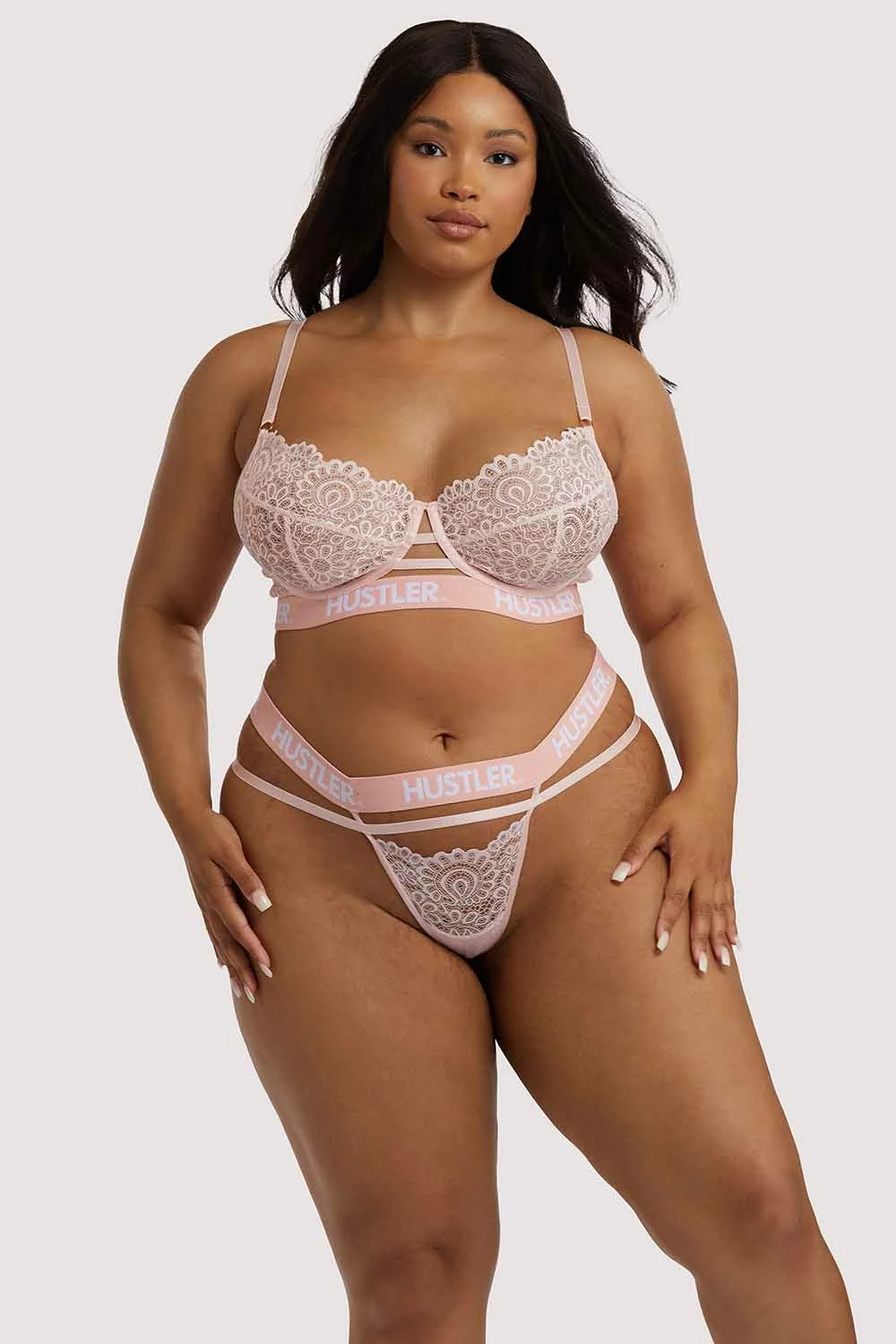 Stay pretty in pink with our Baby Pink Hustler branded Lace Thong. Made of flirty floral lace and finished with an elasticated banded waist with Hustler branding to give it a preppy look! Keep it cheeky with the thong finish in the back…Pair it with the matching Lace Bra for the full finish.