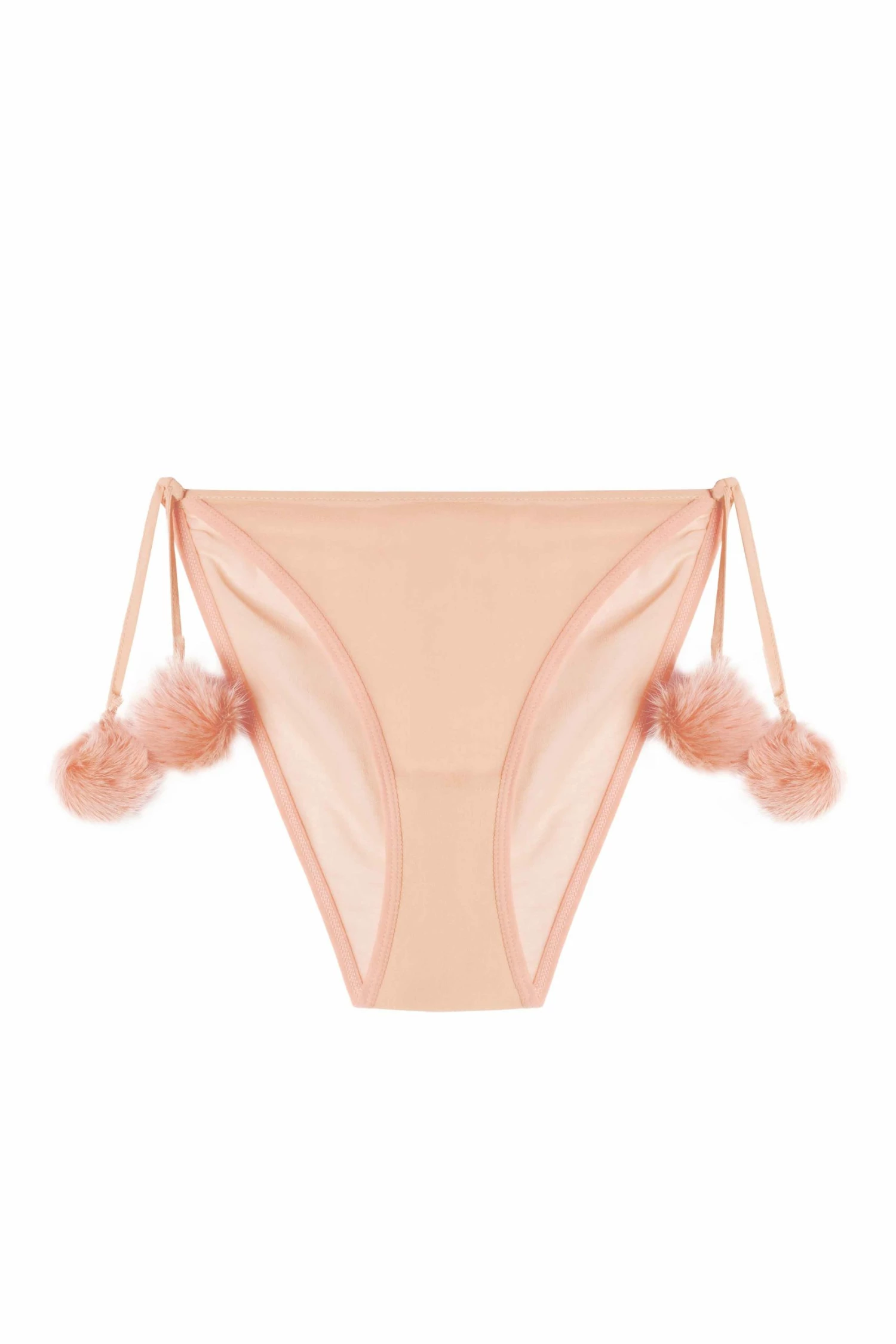 Feel cute in our Baby Pink Bettie Page Dolores Pom Pom Brief. These Briefs are composed of a soft baby pink sheer material with fluffy pom pom ties. Partner with the matching Pom Pom Chemise for the prettiest nightwear set.