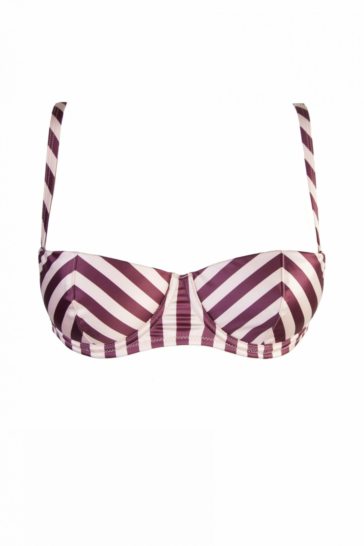 Watch out รขโฌโ looks like the circus troupe is in town! Feast your eyes on Beatrix, a sumptuous yet playful addition to your lingerie drawer that definitely draws its inspiration from all things carnival and burlesque! Beatrix features a sultry demi cup cut, and beautiful, alternating symmetrical stripes in lush wine and warm peach colours. Best worn with our sexy matching Beatrix waspie and thong รขโฌโ this is one set the audience will not be able to take their eyes off! The bra fastens with a series of hooks and eyes at the back. This bra features stronger mesh at the back and thicker straps for greater support and comfort.