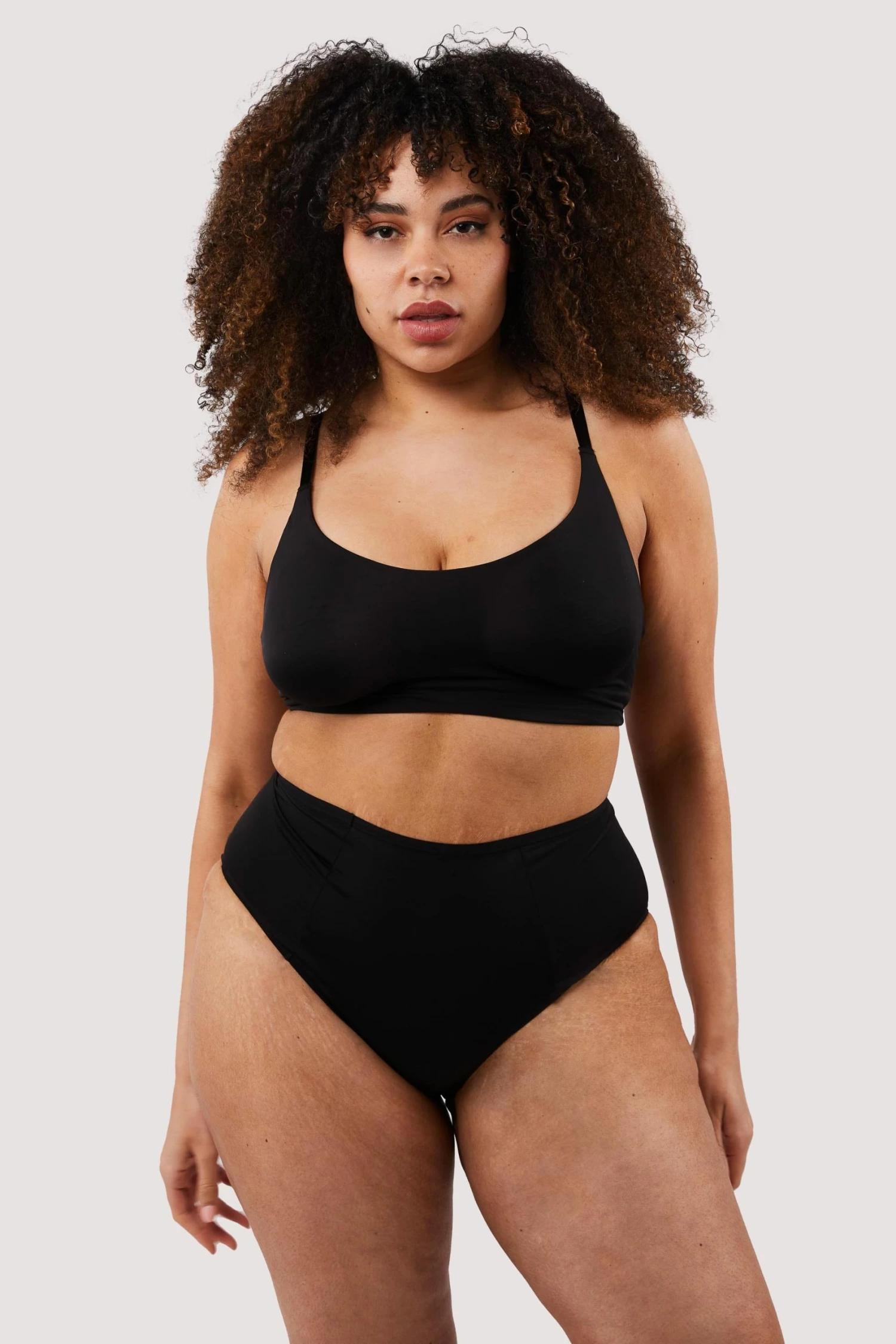 Treat your skin to the recycledย Blackย Crop Topย Bra. This bra features moulded and seam free cups that that will provide a clean, smooth. second skin look. Carefully sculpted, this bra will keep to your natural silhouette and provide support at the same time – making it the perfect unseen bra for almost any activity.