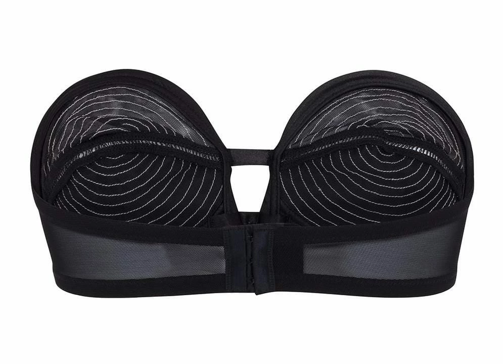 The overwire bra is a totally unique retro addition to your lingerie drawer! The cups are wired above the chest, creating a beautiful projected bust look reminiscent of 50s silhouettes. The bra features a deep V in the centre, making it perfect for low cut strapless dresses, and classic contrast spiral stitching on the cups. The bra is finished off with a large centre bow, and small cushions either side of the cups and in the centre for more comfortable wearability. Wear with a deep scoop neck dress to show off that overwire detail peeking over the top!