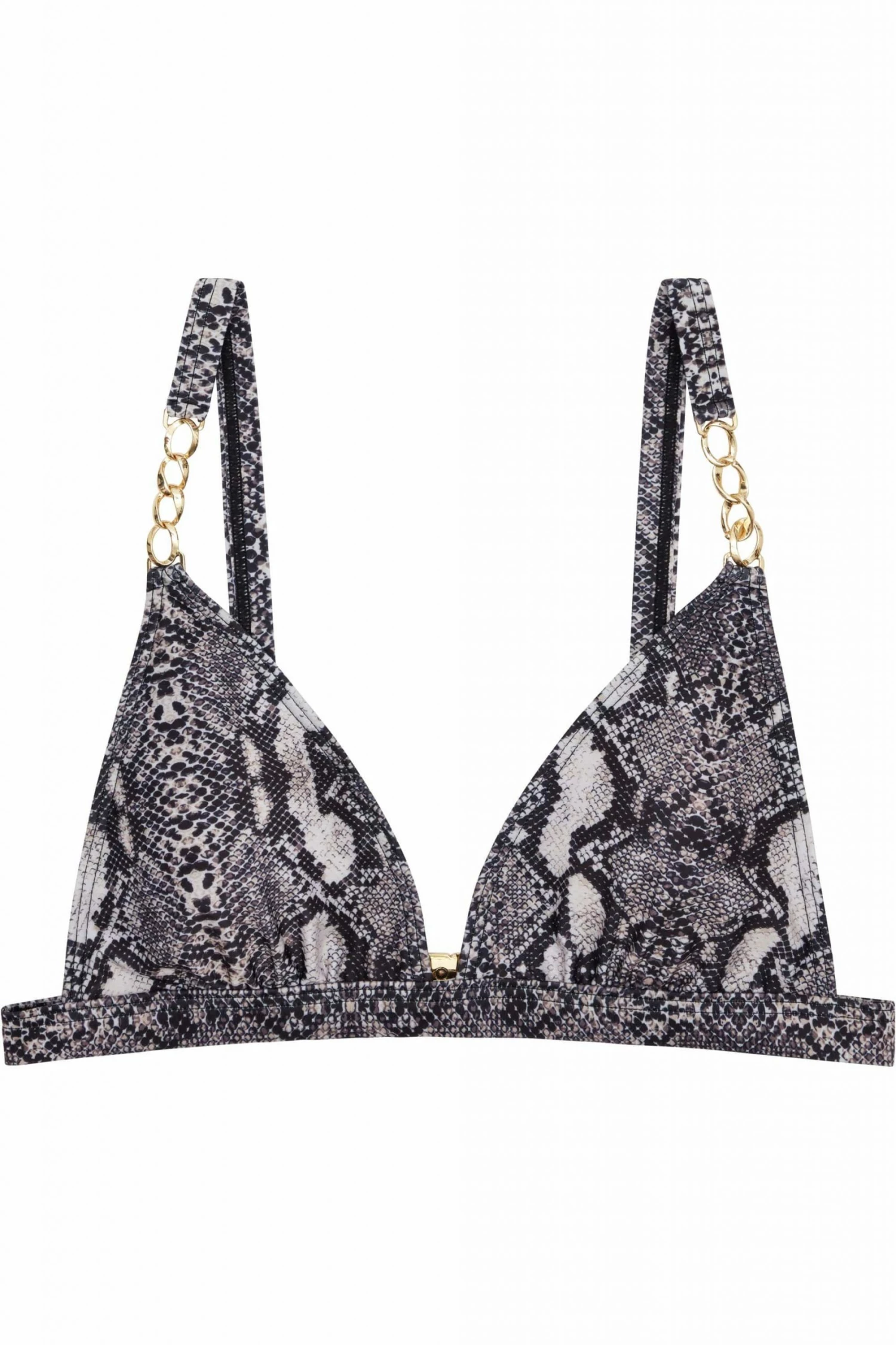 Ssss simply gorgeous. This fun snake print chain triangle top is a must have. The chain detailing at the straps is a key feature, whilst the easy to wear triangle shape is effortlessly cool.