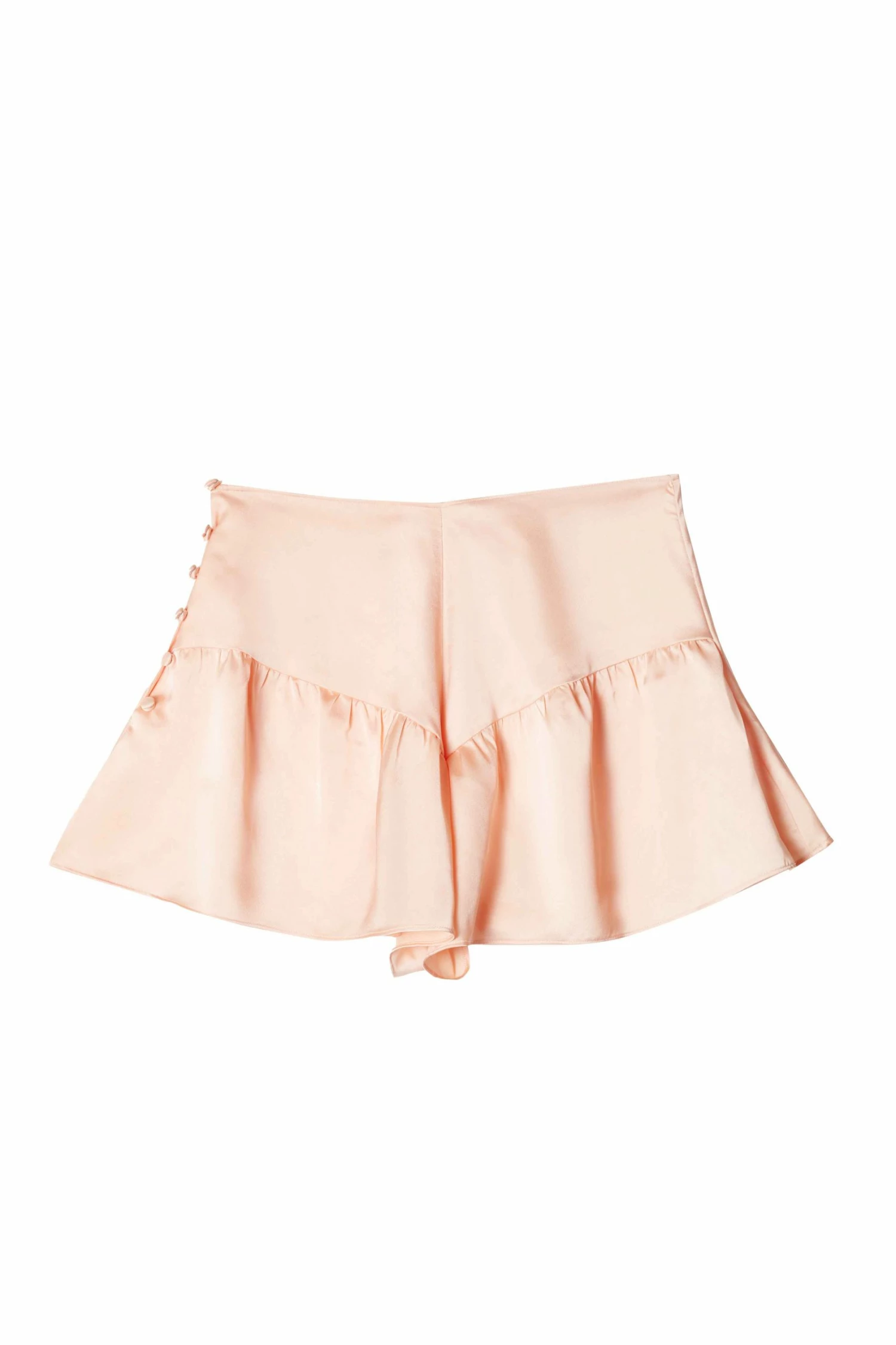 Also known as tap-pants, the Peach French knicker is ideal for the more feminine 50s styles of circle skirts and flared dresses. The French knickers are made in a luxurious peach satin, featuring a 5-button opening on the side for ease of slipping on. The waist is fitted and the shorts are gathered to flare out at the legs.