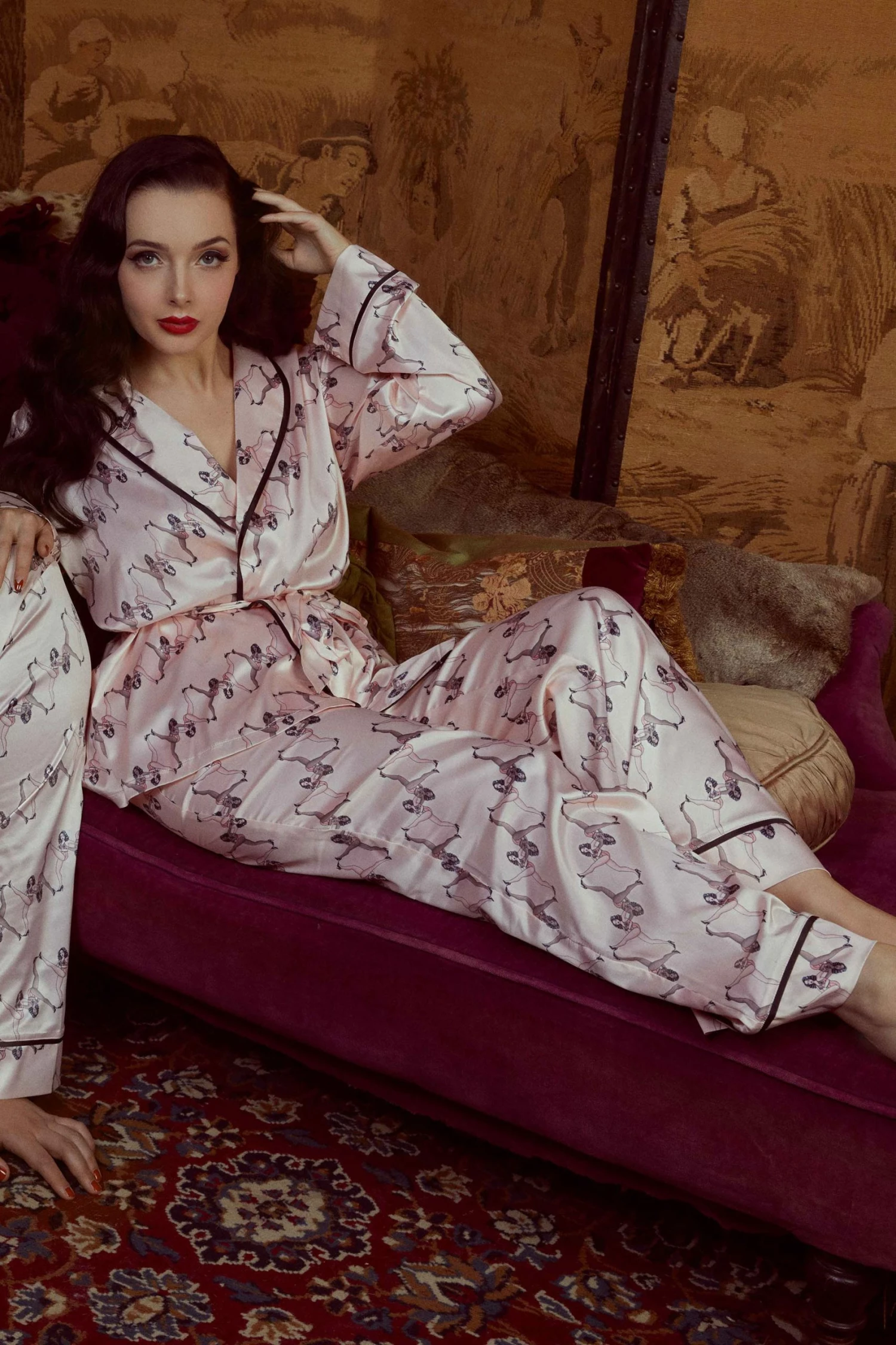 Release your inner showgirl in our Showgirl Wrap Pyjamas. These silky satin pyjamas are perfect for cozying up whilst looking cute at the same time!