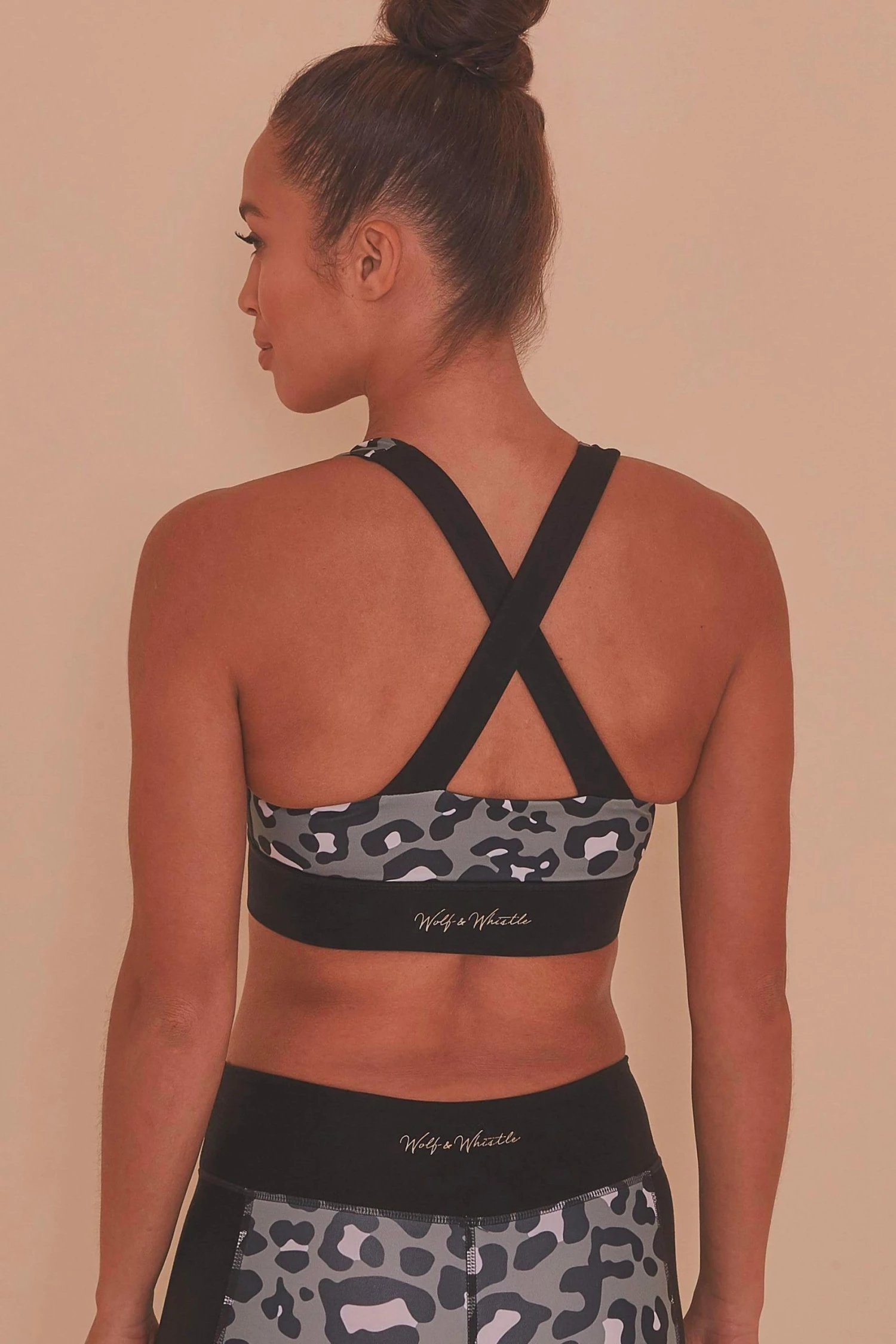 Work up a sweat in the Cross Back Leopard Sports Bra!