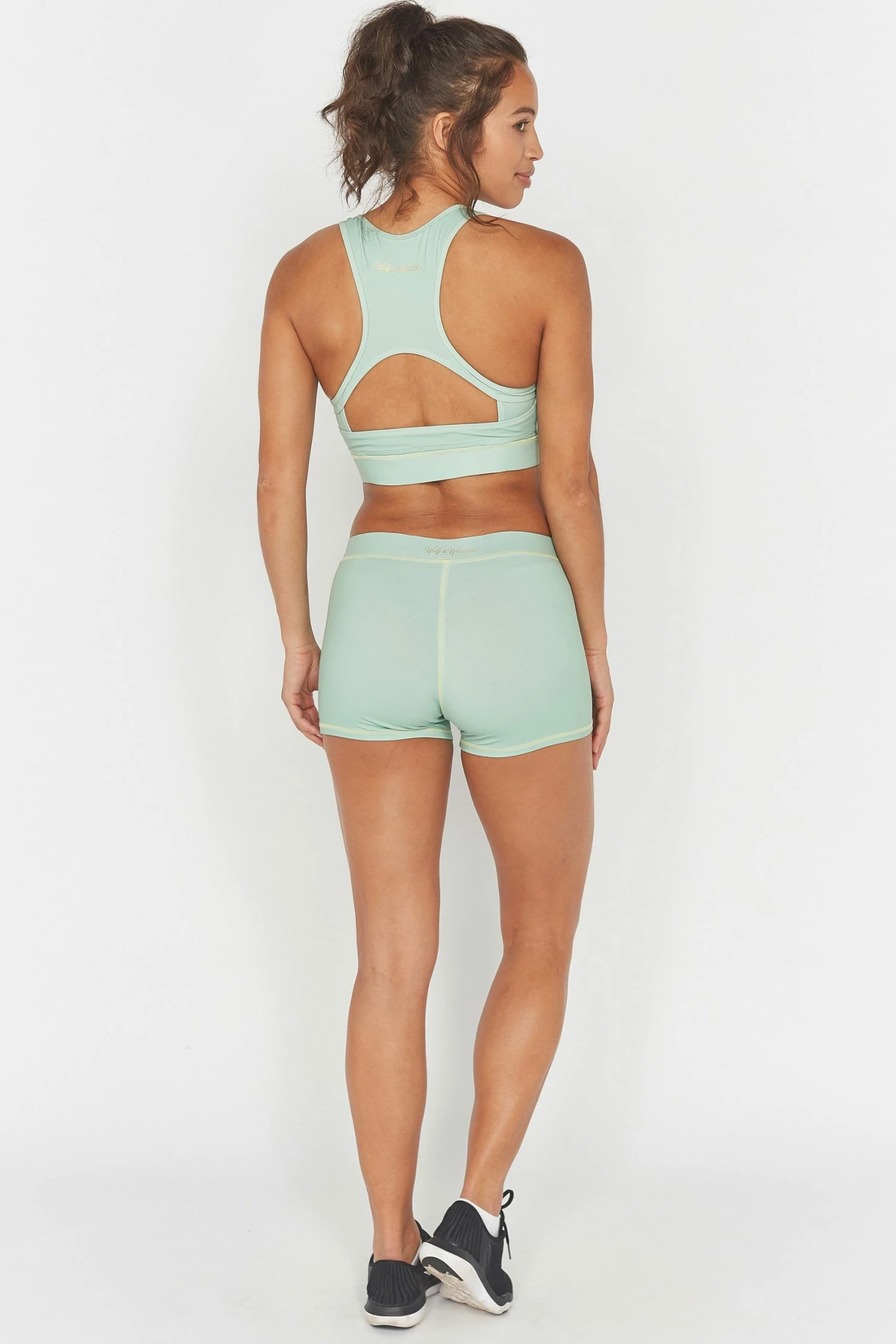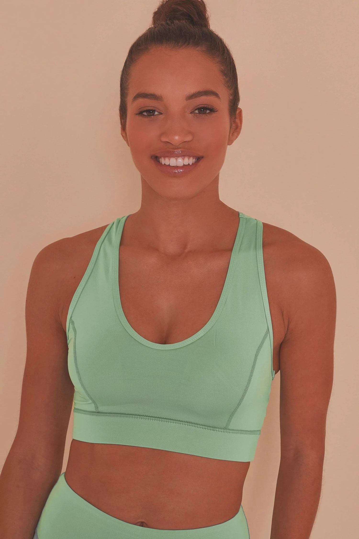 Being active never has to be boring, this bright green set is bound to get your heart pumping as you rock this cut out racer back sports bra.
