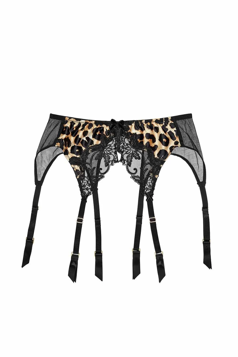 Dita Von Teese Lingerie plus sizes are exclusively available at Playful Promises. The Millicent suspender features a rich black embroidery on a leopard print woven stretch satin. 6 garter attachments for additional stability