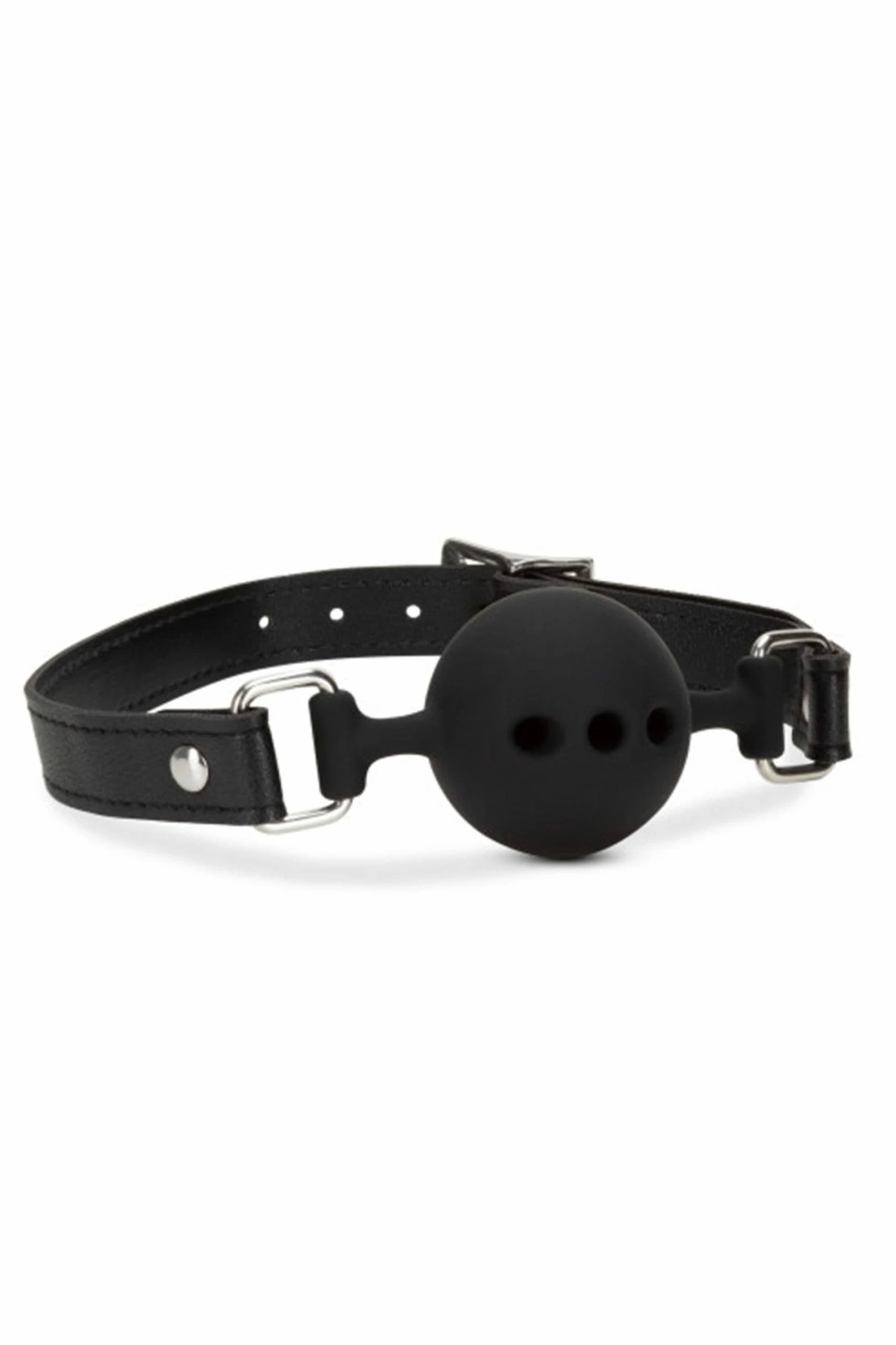 Explore tonight… The Noir Ball Gag covers your lover’s mouth, stifling their words…but not their whimpers as you have your way with them. This ball gag includes breathable air holes for safety. The strap is highly adjustable, with nickel-free metal buckles.