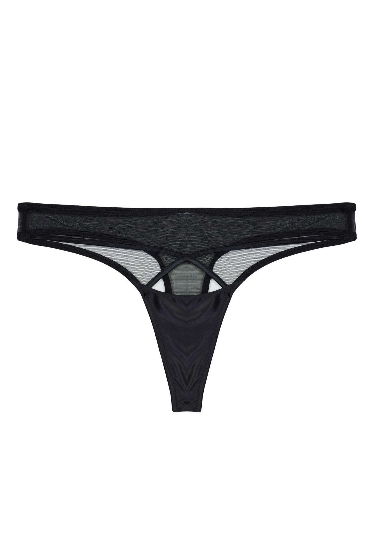 Simple, sophisticated, but highly erotic, the Charlie thong in sleek black satin features a sexy sheer front with cut out detailing. This set is definitely a boudoir essential.