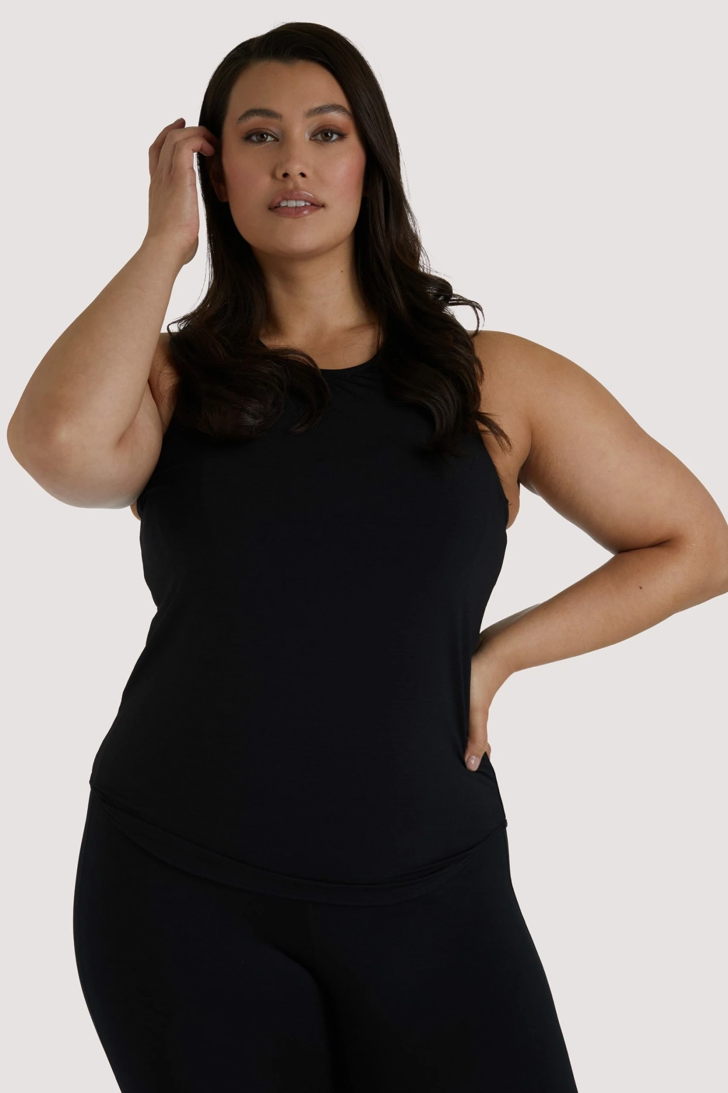 Elevate your gym bag with the Jersey and Mesh vest! This loose-fitting vest is perfect for layering over a sports bra and leggings. The back features a sheer mesh panel, giving a subtle hint of skin.