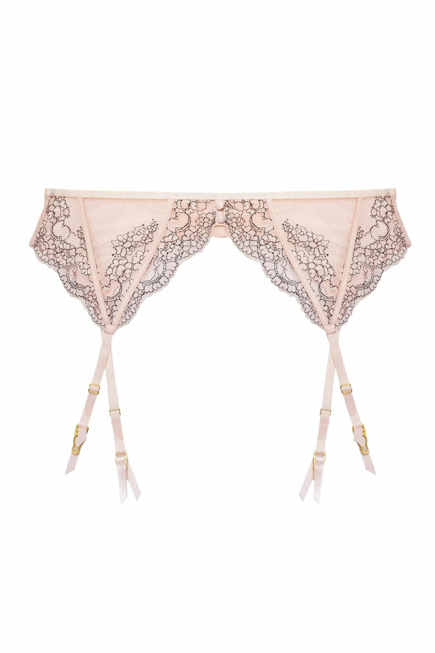 Feel flirty in our Jenny Graphic Lace Blush Suspender Belt. Crafted from pale blush mesh finished with an overlay of lace to give you the ultimate wow factor. Pair with our matching Bra and Brief for the complete underwear set of dreams.