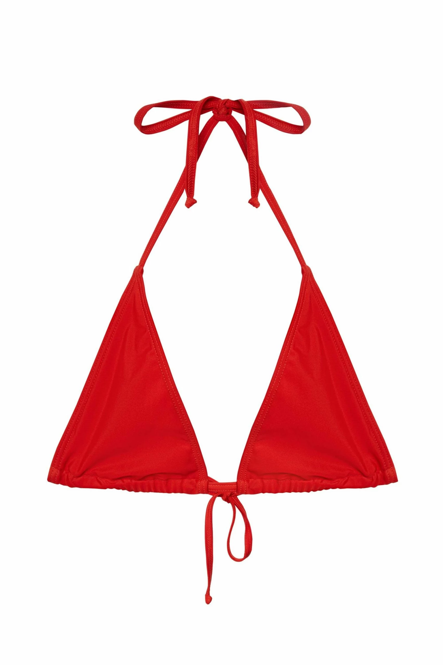Turn up the heat with our red Hustler bikini, featuring a tie up halter neck. Style with the coordinating bikini bottoms to complete the look.