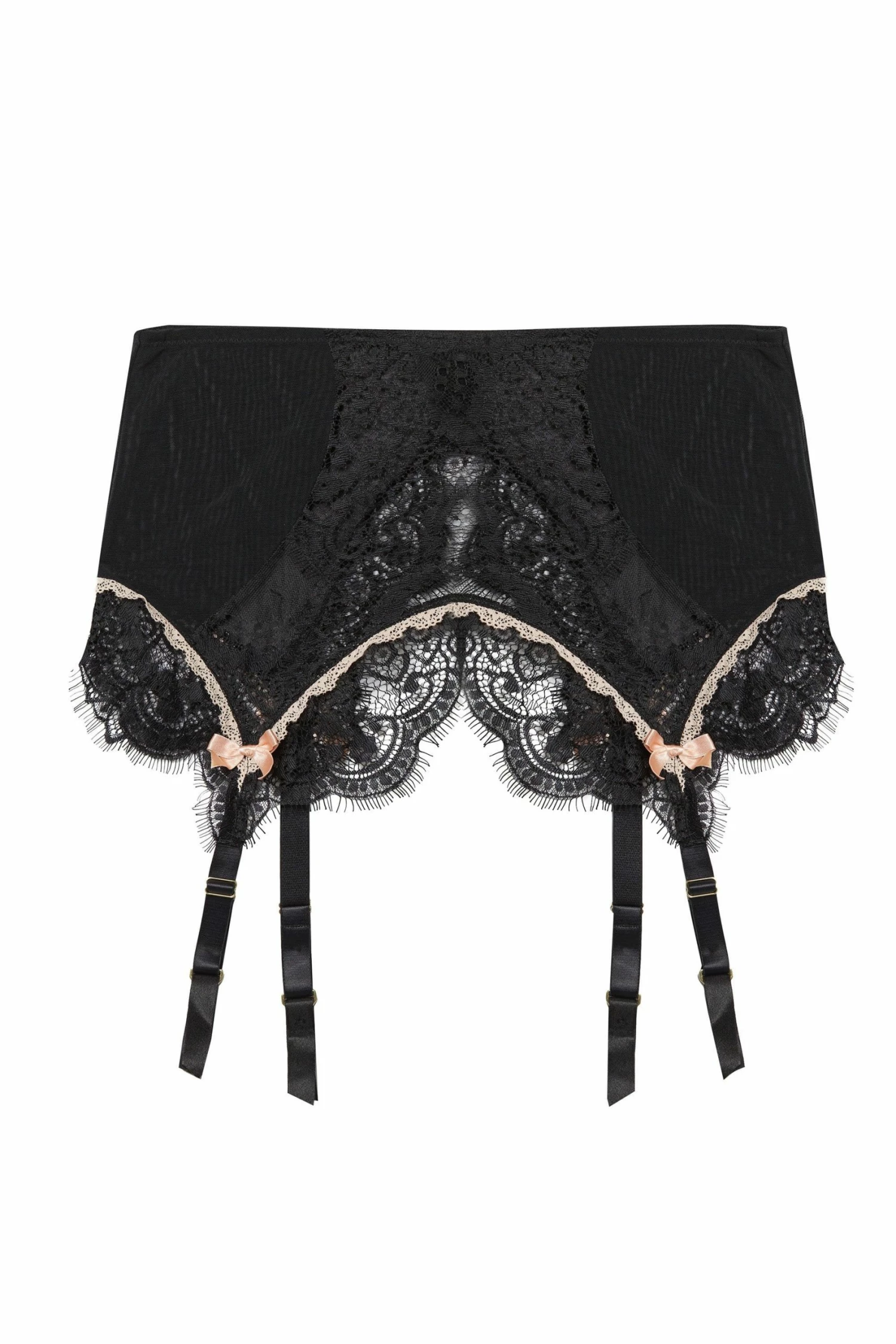 - Black lace and mesh suspender